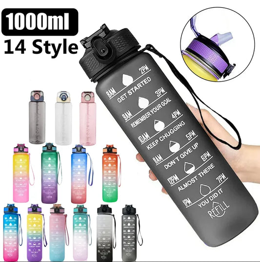 Botella Deportiva Motivacional 1L – A Prueba de Fugas, con Marcador de Tiempo e Hidratación